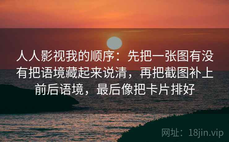 在信息爆炸的时代,如何让你的内容脱颖而出,直击人心,成为了一门至关重要的学问。尤其是在分享影视片段、解析剧情梗概时,我们常常面临一个挑战:如何在最短的时间内,让观众理解我们想要表达的核心?我的方法论,或许能为你打开一扇新的窗户——“人人影视我的顺序:先把一张图有没有把语境藏起来说清,再把截图补上前后语境,最后像把卡片排好。”