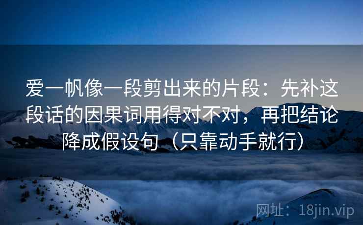 在你发布之前,我们先来细致地审视一下你提出的这个标题:“爱一帆像一段剪出来的片段:先补这段话的因果词用得对不对,再把结论降成假设句(只靠动手就行)”。