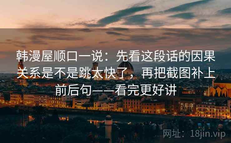 我说的就是咱们今天这个标题:“韩漫屋顺口一说:先看这段话的因果关系是不是跳太快了,再把截图补上前后句——看完更好讲”。